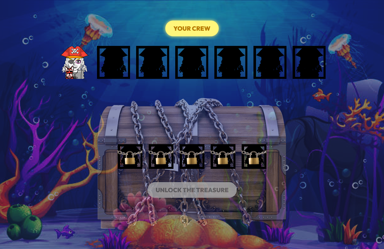 The key to the treasure is a unique combination of five pirate NFTs from the collection. This combination is generated randomly during the drop; all you have to do is find them.